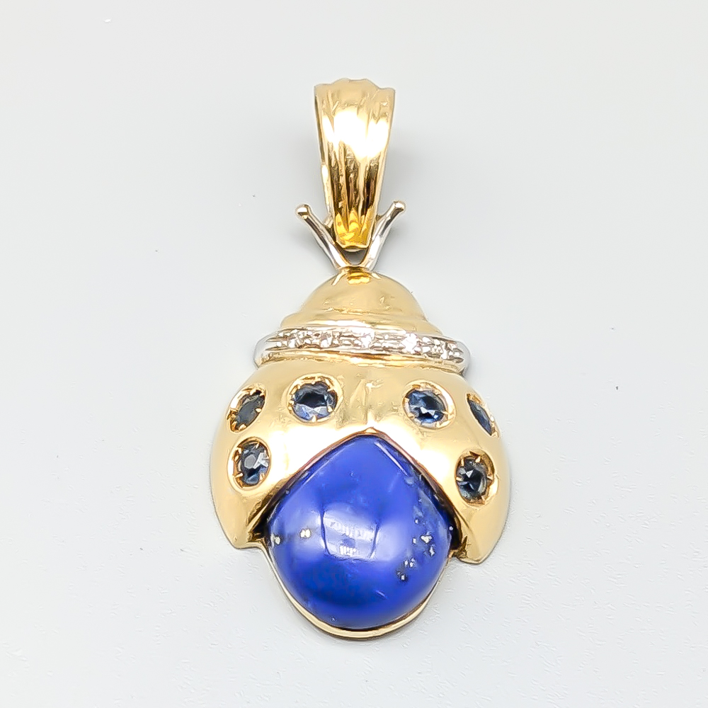Diamond Pendant in Gold with Lapis Lazulin and Blue Stones 18K 8.69g 31mm
