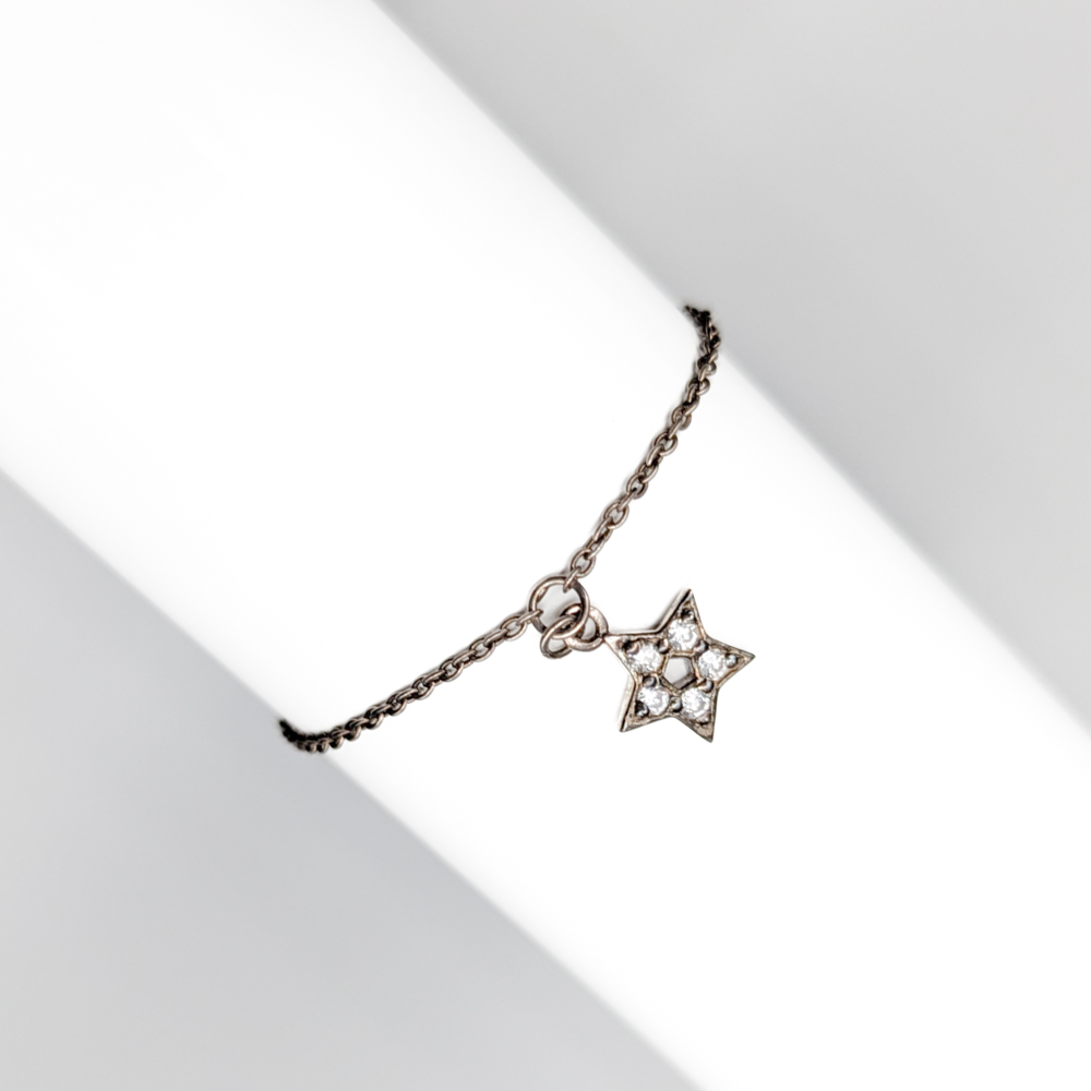 16.5cm Cable Chain in Silver with Star with White Stones S925 1.67g