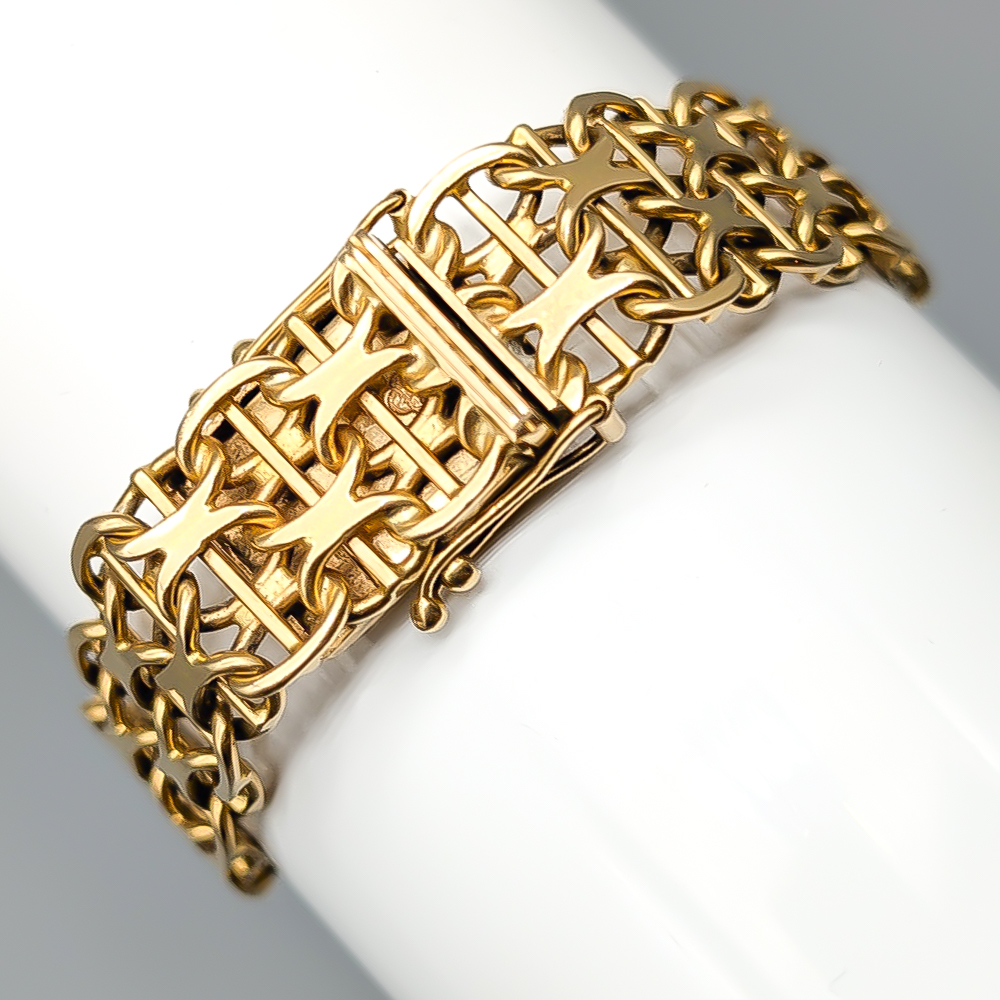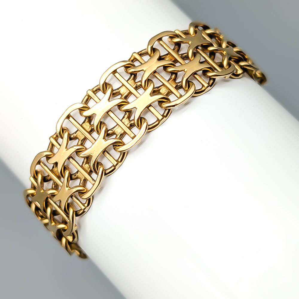 Bracelet, Gold, X-Chain, 18K, 26.17g, Length: 19.5cm, Width: 12mm, Good condition. Stamped: NSE