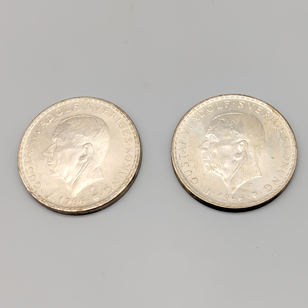 2 pcs Silver Investment Coins, 5 SEK, Sweden 1966, Commemorating the establishment of the bicameral parliament in 1866 S400 36.35g 34mm