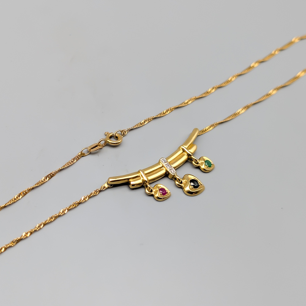 37.5cm Singapore Chain in Gold with Integrated Pendant with Diamonds, Ruby, Sapphire and Emerald 18K 4.77g