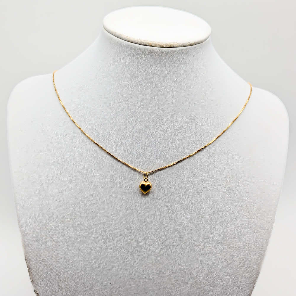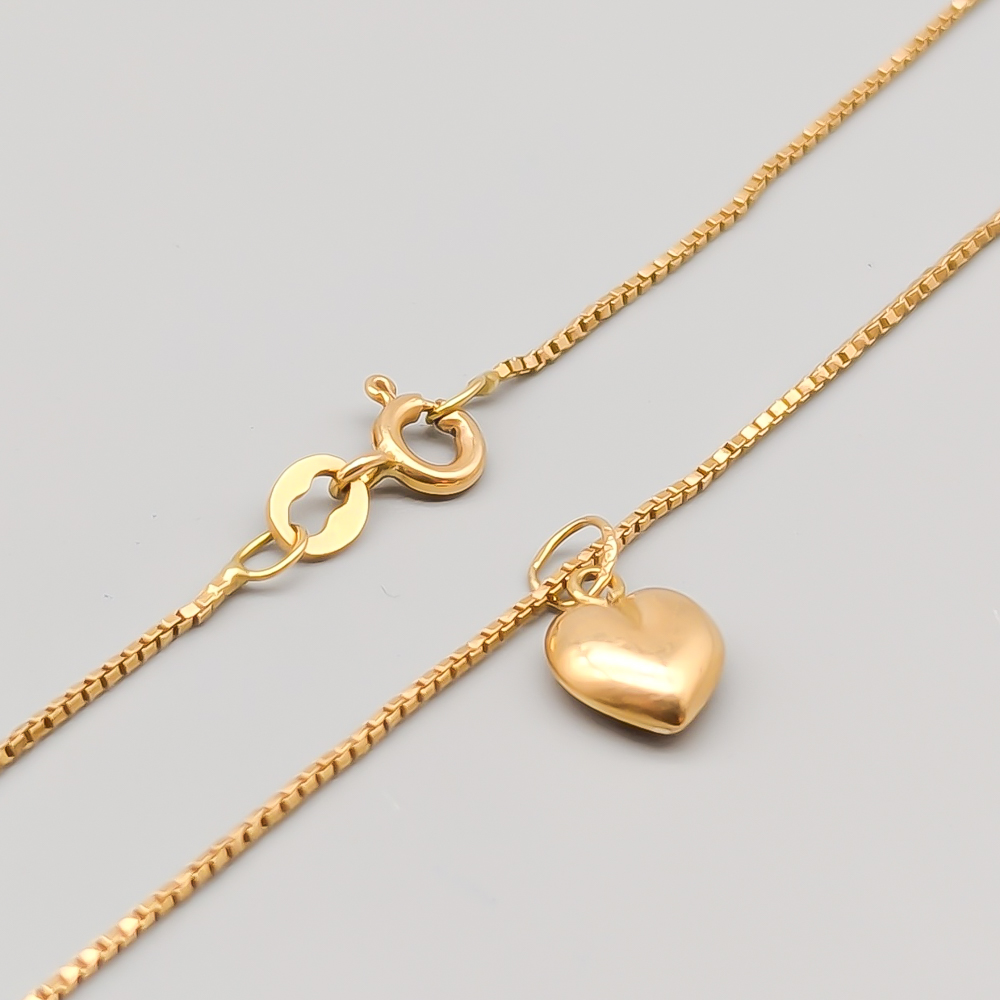 38.5cm Box Chain in Gold with Heart Pendant 18K 2.38g