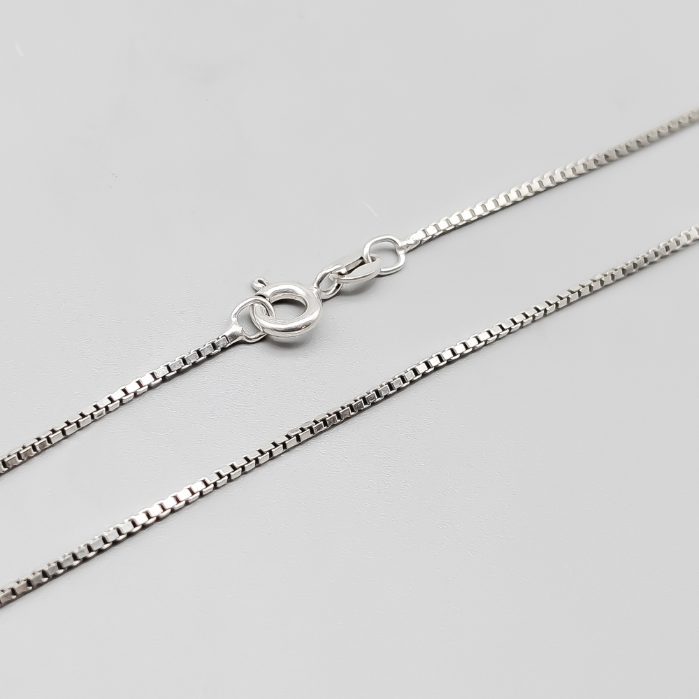 Necklace, Silver, Box Chain, S925, 2.57g, Length: 38.5cm, Width: 1mm, Good condition.
