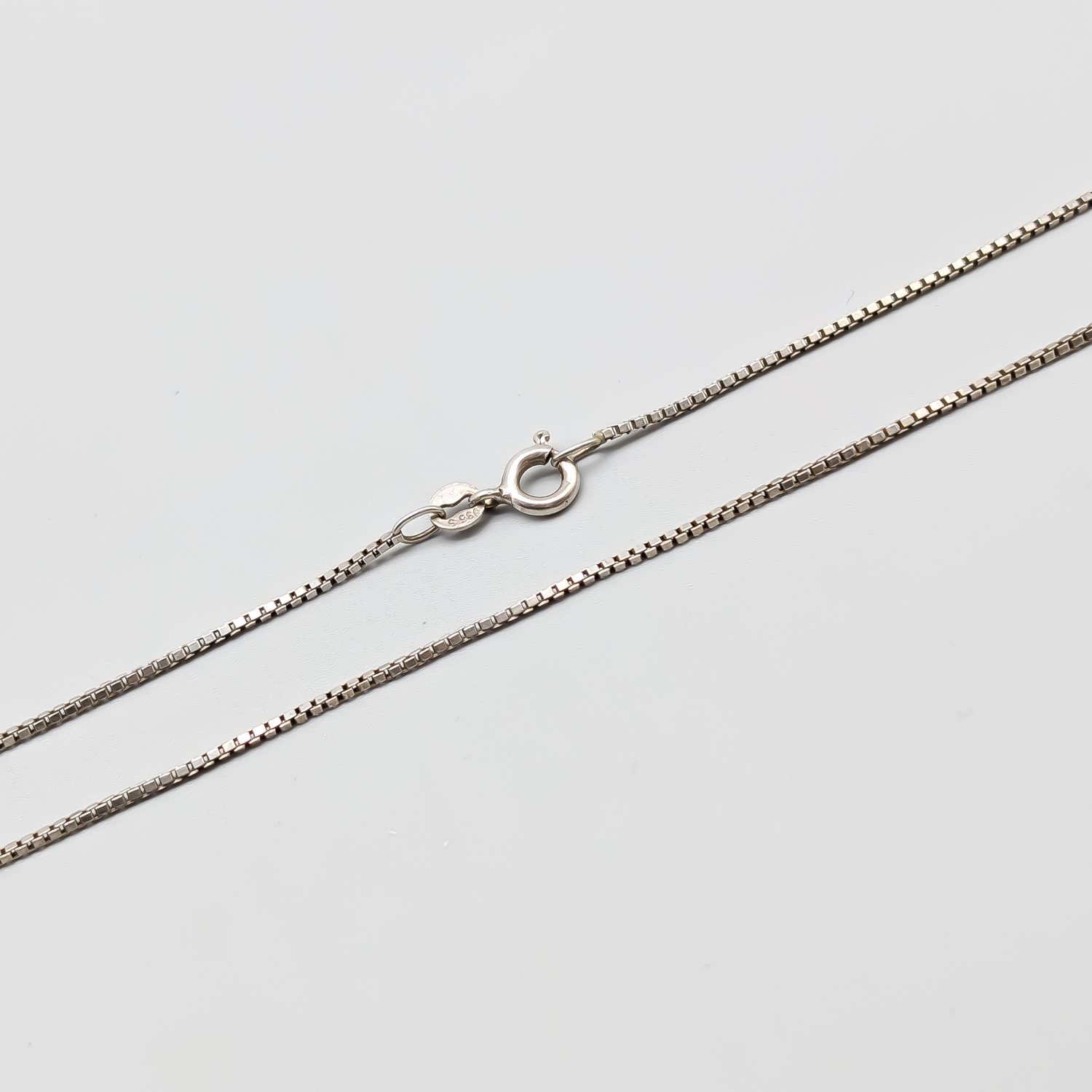 Necklace, Silver, Box Chain, S830, 2.52g, Length: 38cm, Width: 1.1mm, Vintage. Uneven links.