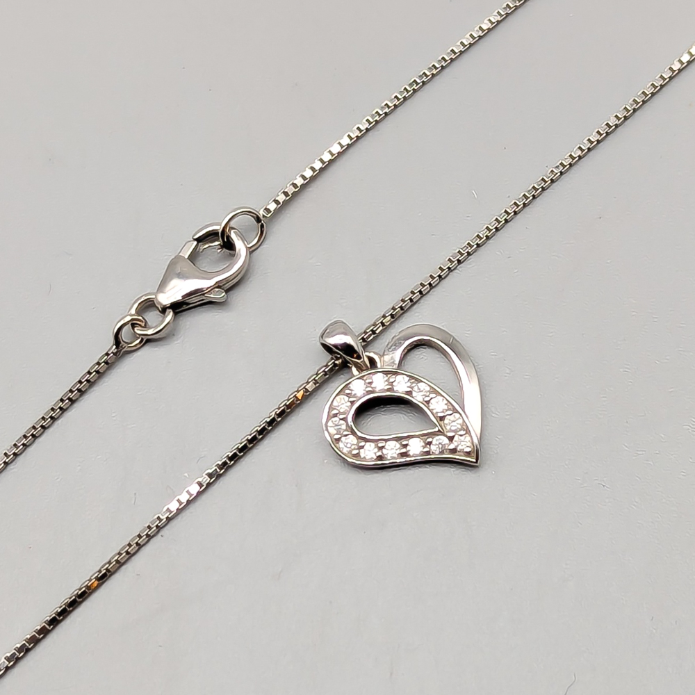 41cm Box Chain in Silver Heart with Stones S925 2.59g