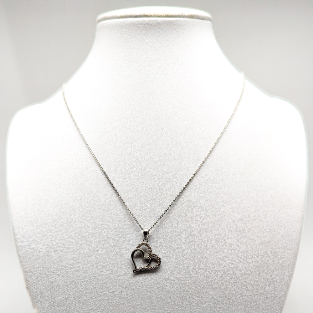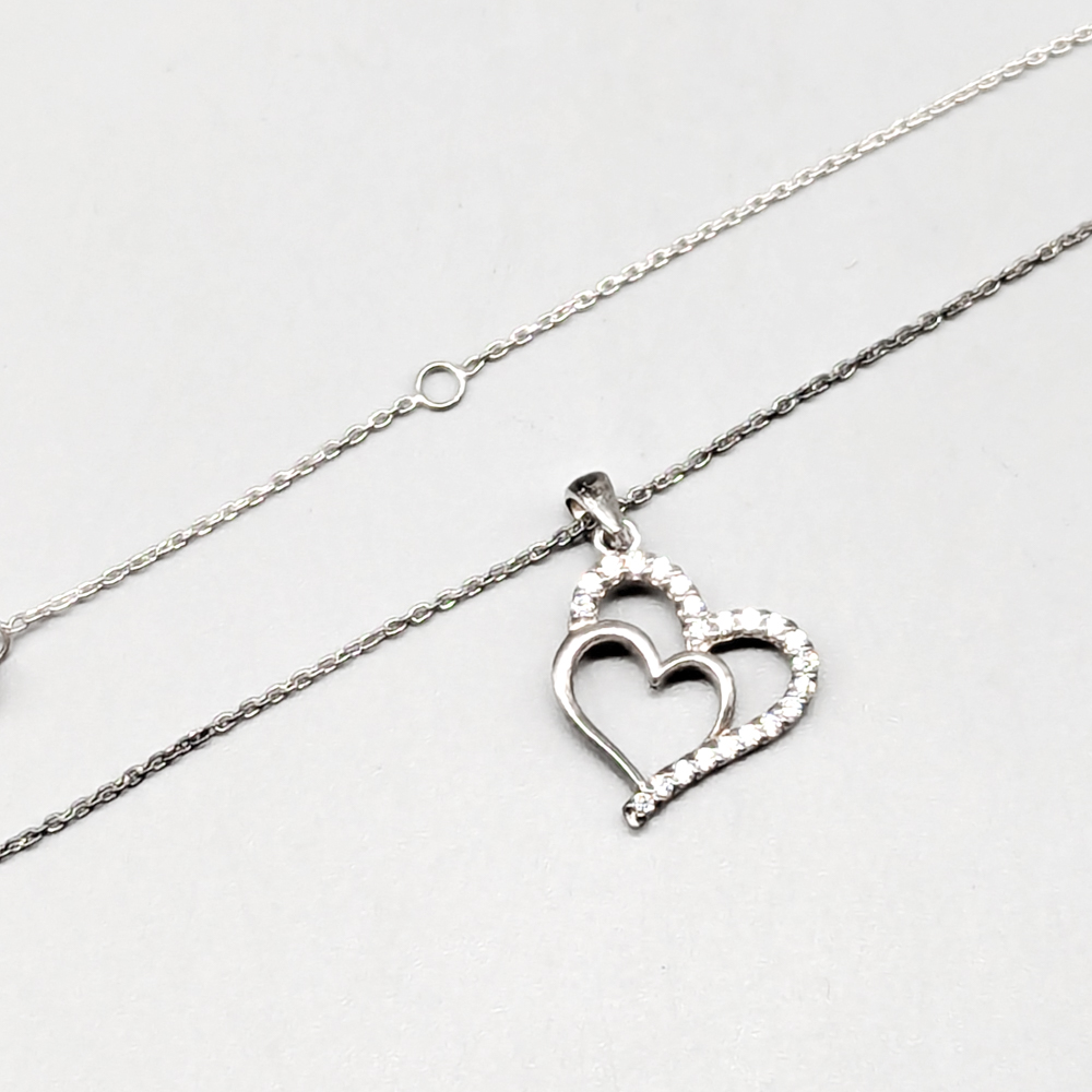 41cm Cable Chain in Silver with Pendant Heart with White Stones S925 2.43g