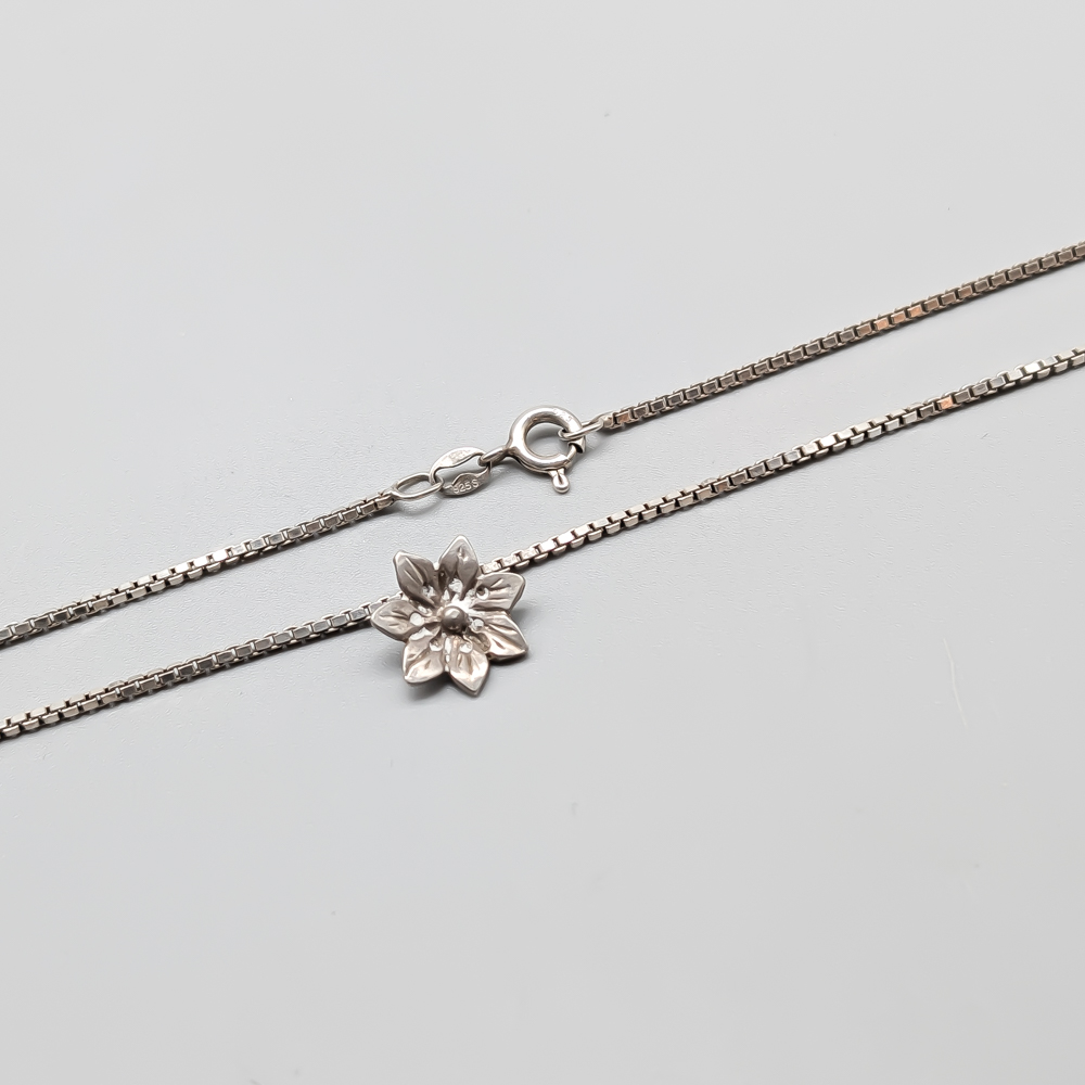 43cm Box Chain in Silver with Flower S925 5.17g