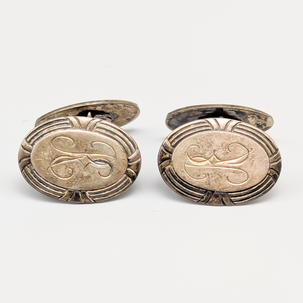 Cufflinks, Silver, S830, 11.27g, Length: 20mm, Width: 14mm, Good condition, Contains engraving.