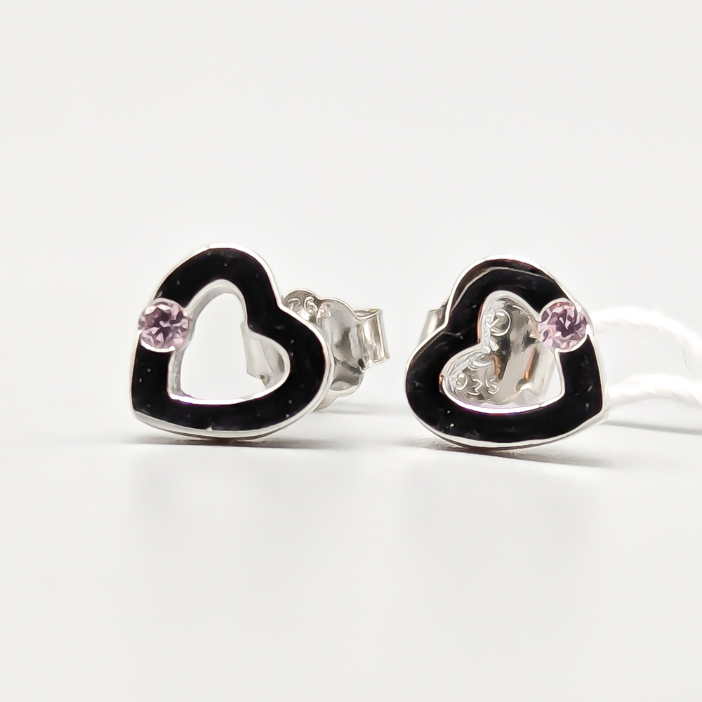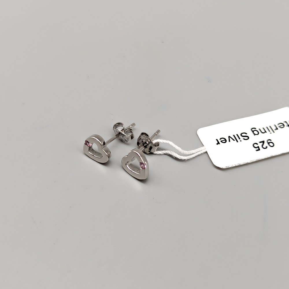 Earrings in Silver Hearts with Pink Stones S925 0.97g 8mm