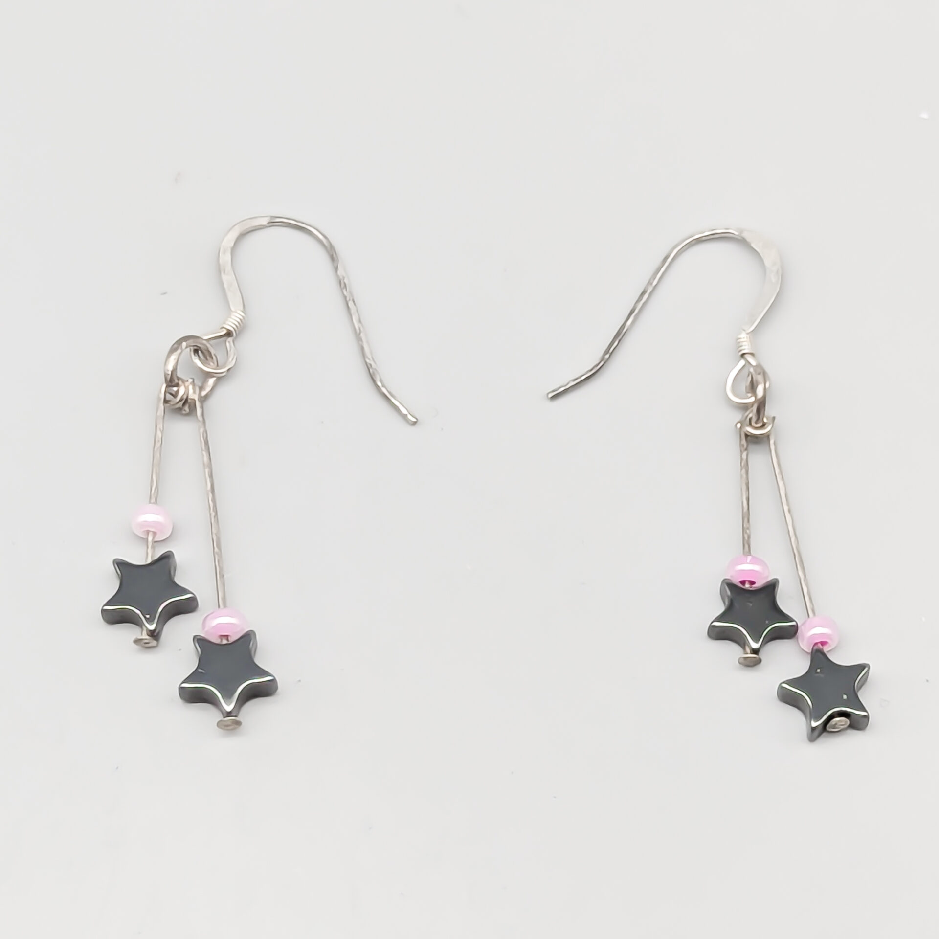Earrings in Silver with Hematite and Glass Beads S830 1.74g 42mm