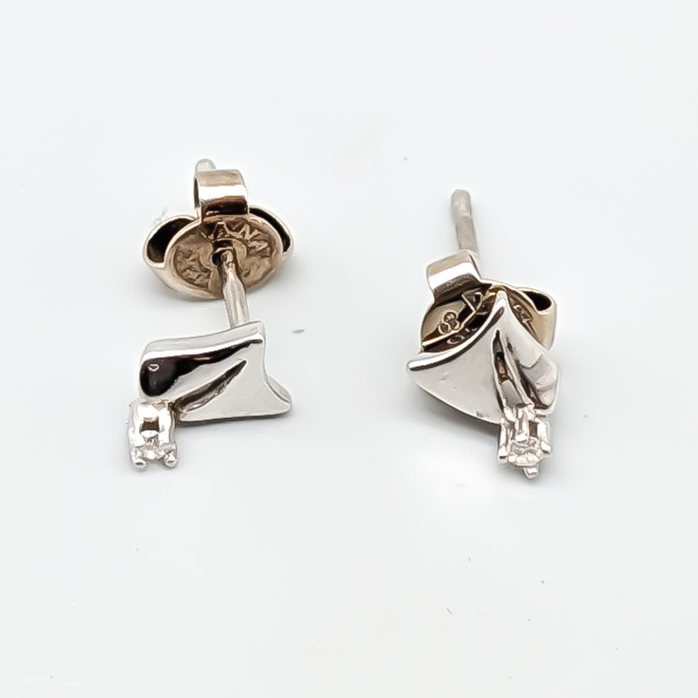Earrings, Gold, 18K, 1.34g, Length: 8mm, Width: 6mm, Good condition. Stamped: ANA