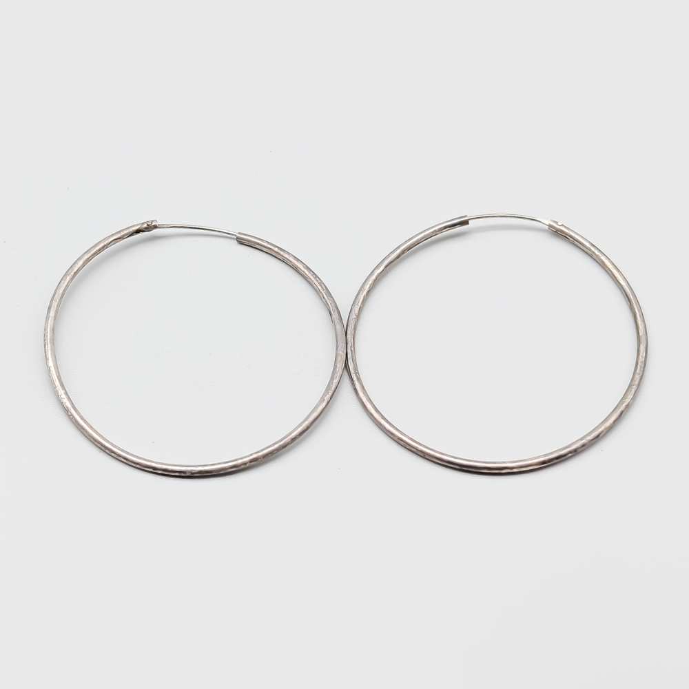 Earrings, Silver, Hoop, S925, 2.23g, Length: 45mm, Width: 1.5mm, Vintage. Uneven.