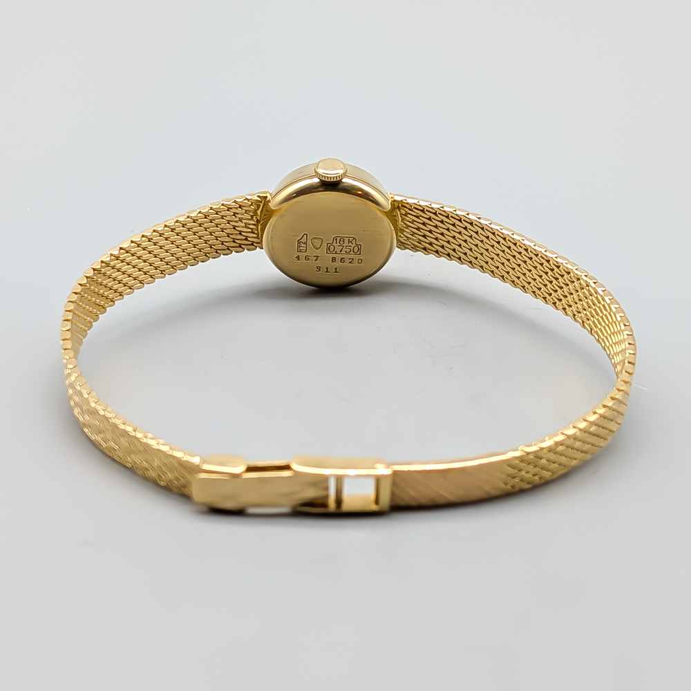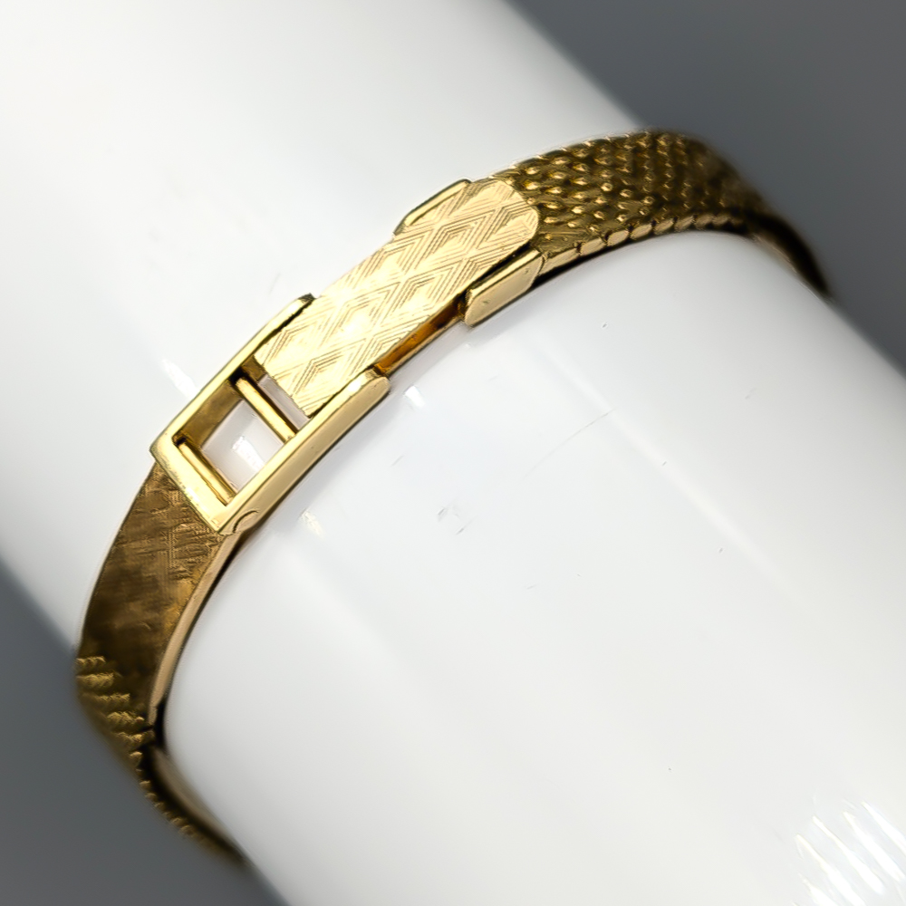 Watch, Gold, 18K, 23.79g (Of which precious metal: approx. 20.29g), Length: 18.5cm, Width: 17mm, Good condition, Not function tested, Contains serial number. Both band and watch in gold.