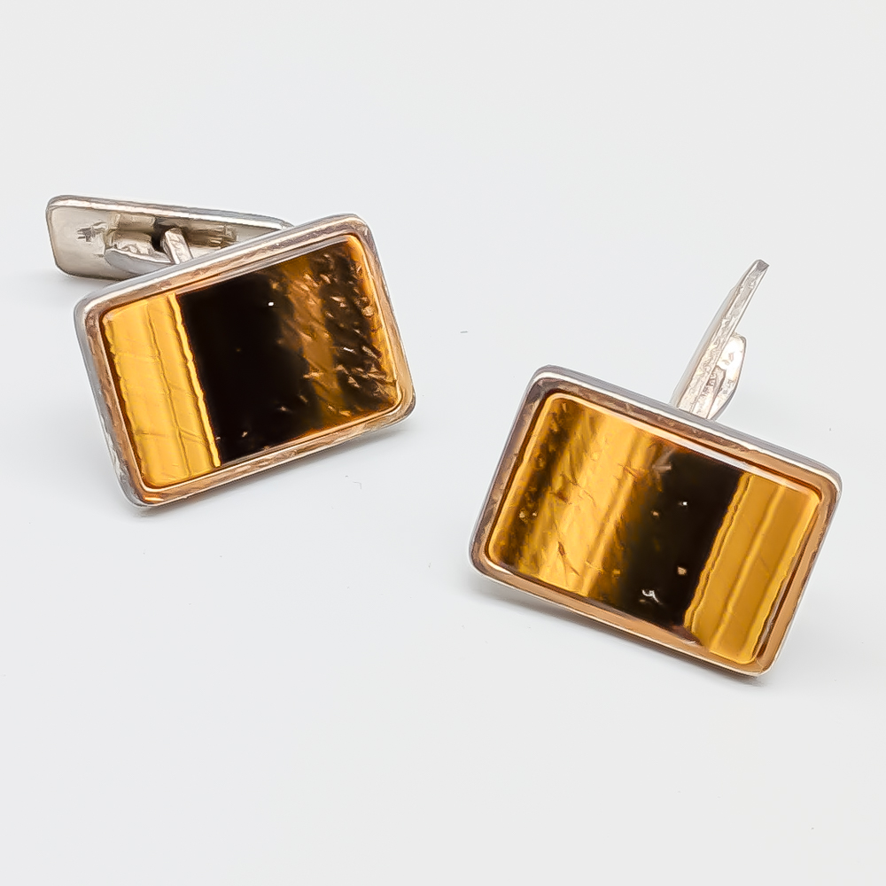 Silver Cufflinks with Tiger’s Eye S830 13.82g 21mm